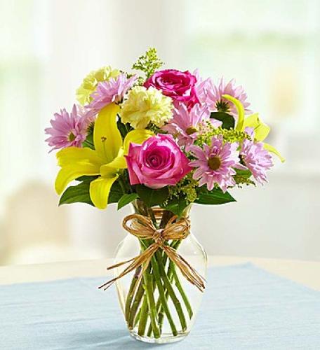 Brighten up a table, send get well wishes, or simply sprinkle sunshine on someone's day with this summer flower arrangem